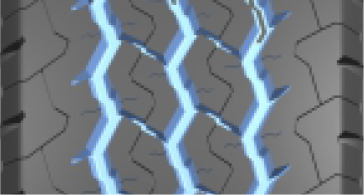 三條寬闊的曲折排水溝槽,有效防止輪胎側(cè)向打滑;S型花紋設(shè)計,提高輪胎制動剎車性能。